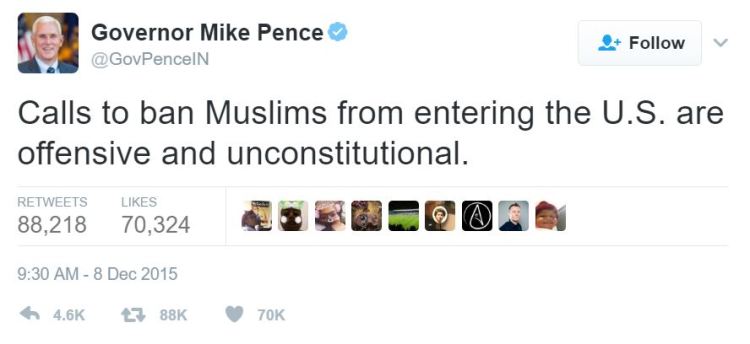 That, I believe, speaks for itself in what we should be doing, rather than preventing people from entering the country. However, for good measure, I’d like to throw in this Mike Pence tweet, and remind you that he is the current Vice President: